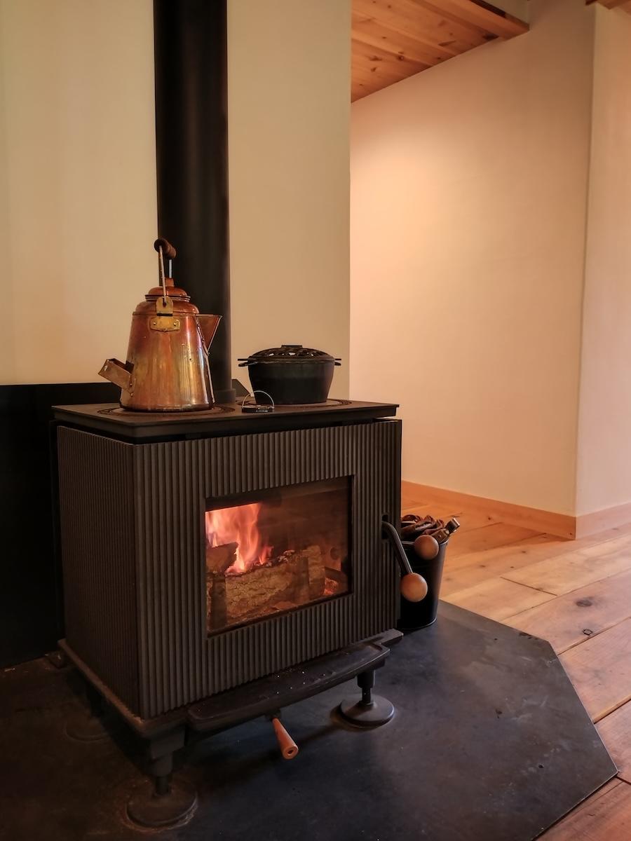 薪ストーブも火を入れました。炎の揺らめき楽しみながら、8MATOの時間を楽しんでください。