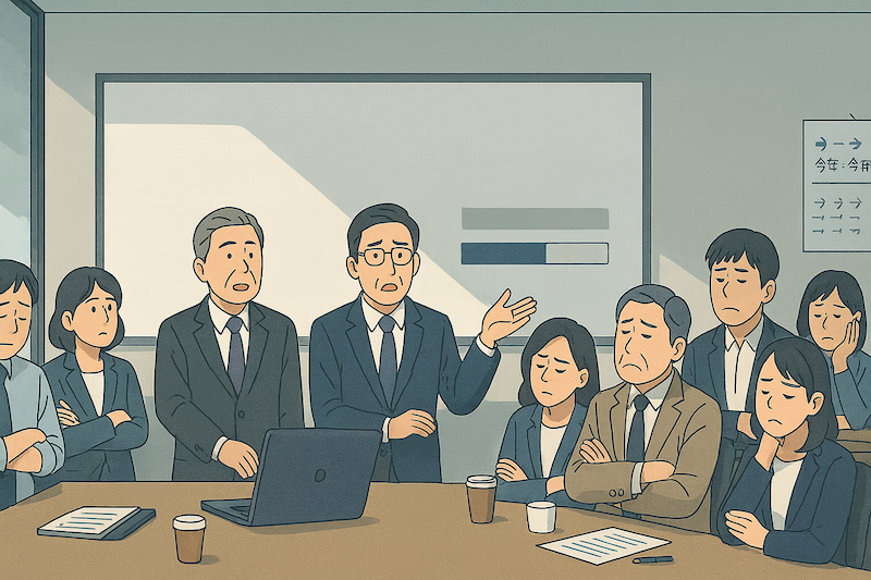 「チームを作り、変革の取り組みをスタートさせました。ただ、なかなか成果は出ませんね。(この会社は、去年も同じことを言っていました)」