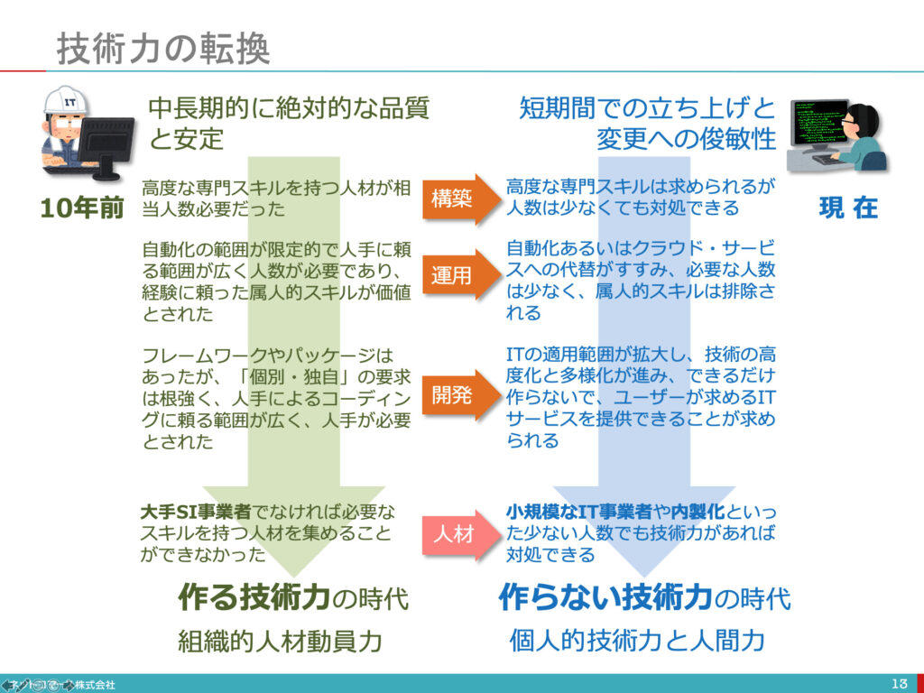 なぜ、そう断言できるのか。その理由は、ユーザー企業が求めるところが、「作る技術」から「作らない技術」へと明確に変わりつつあるからです。