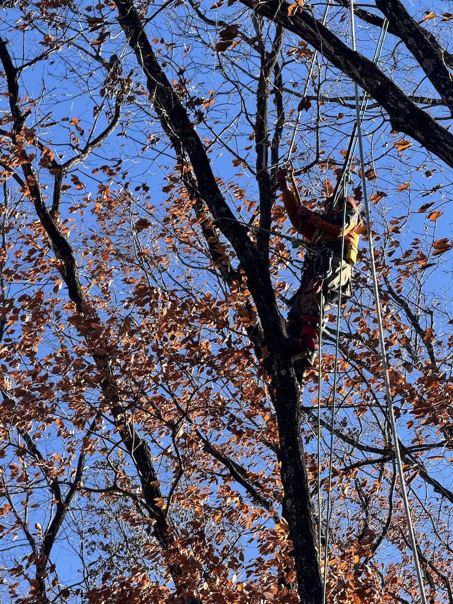 そんな8MATOでナラ枯れの対策が始まりました。強風の中、樹木医の安藤さんが、大きく揺れる木によじ登り、上の方から少しずつ伐採するという、職人技を披露してくれました。