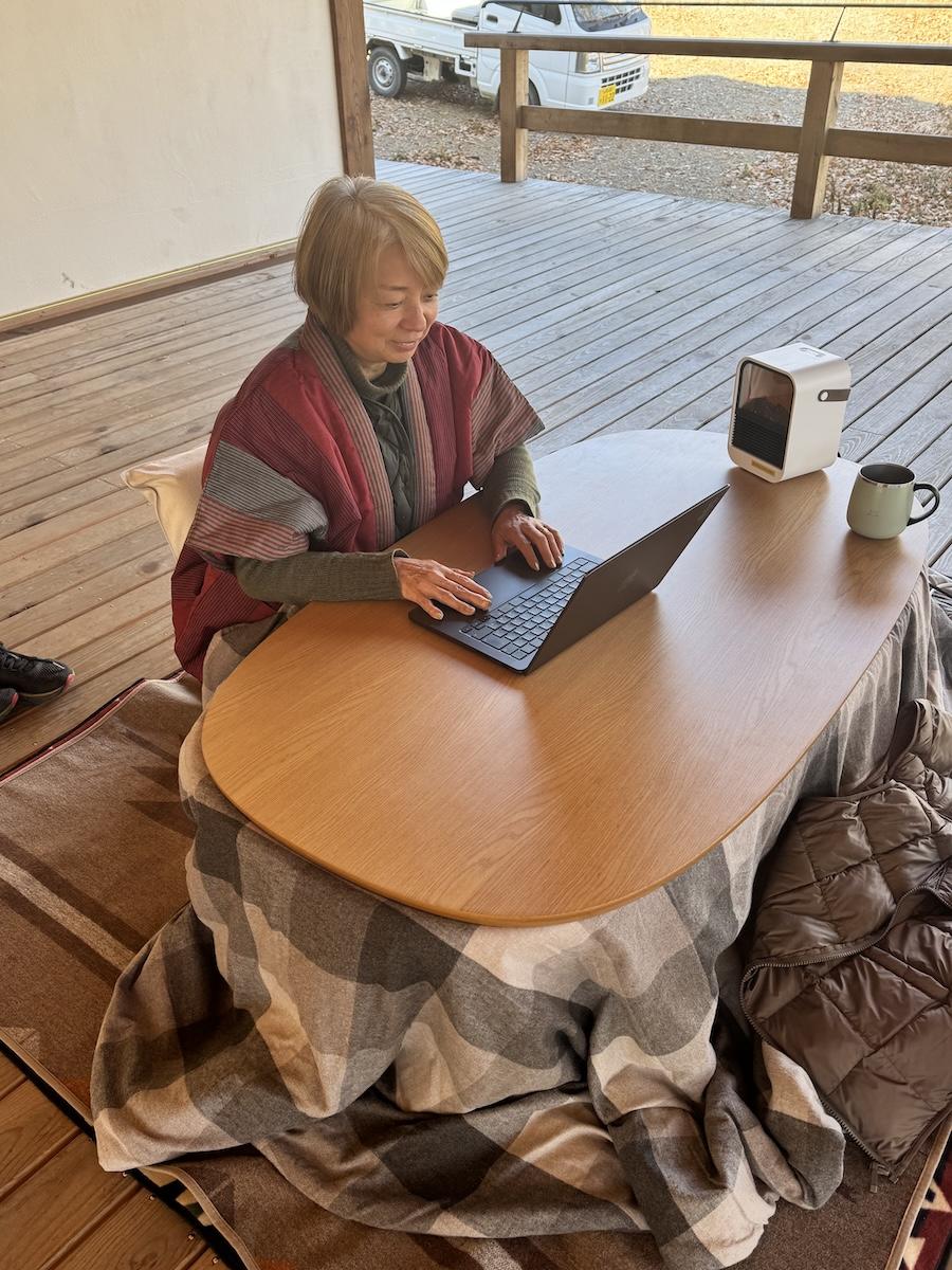 そんな賑やかで暖かな室内から、身を隠すようにベランダのコタツで、ひとりさみしくキーボードを叩いているのが、私です(笑)。