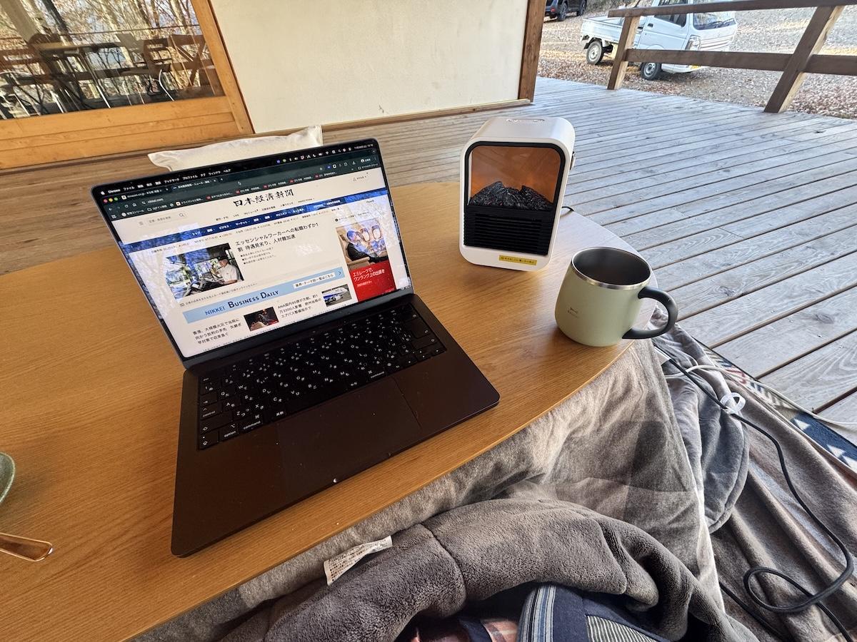 そんな寒風吹きすさぶテラスで、快適なコタツ・ライフをエンジョイしてもらうための2つの秘密兵器を用意しました。