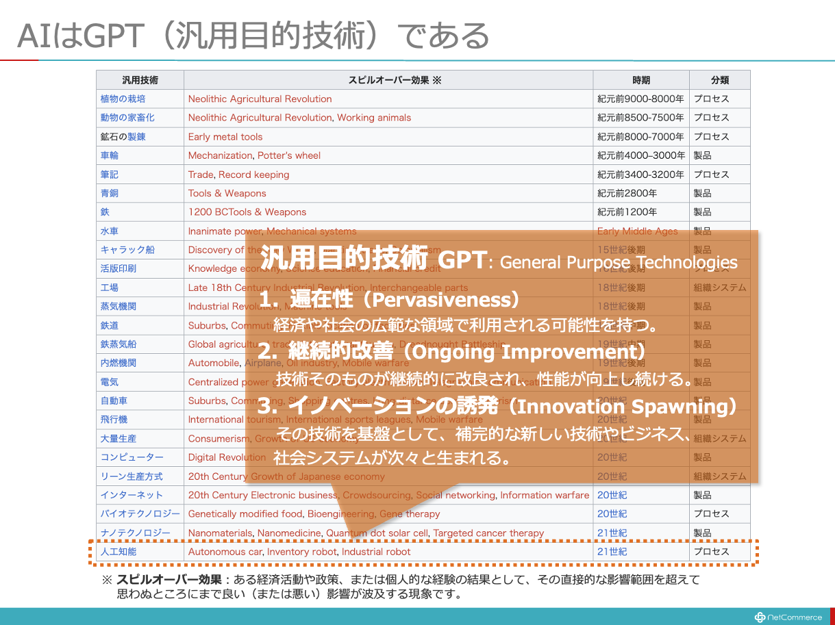 - 汎用目的技術としてのGPT:General Purpose Technology