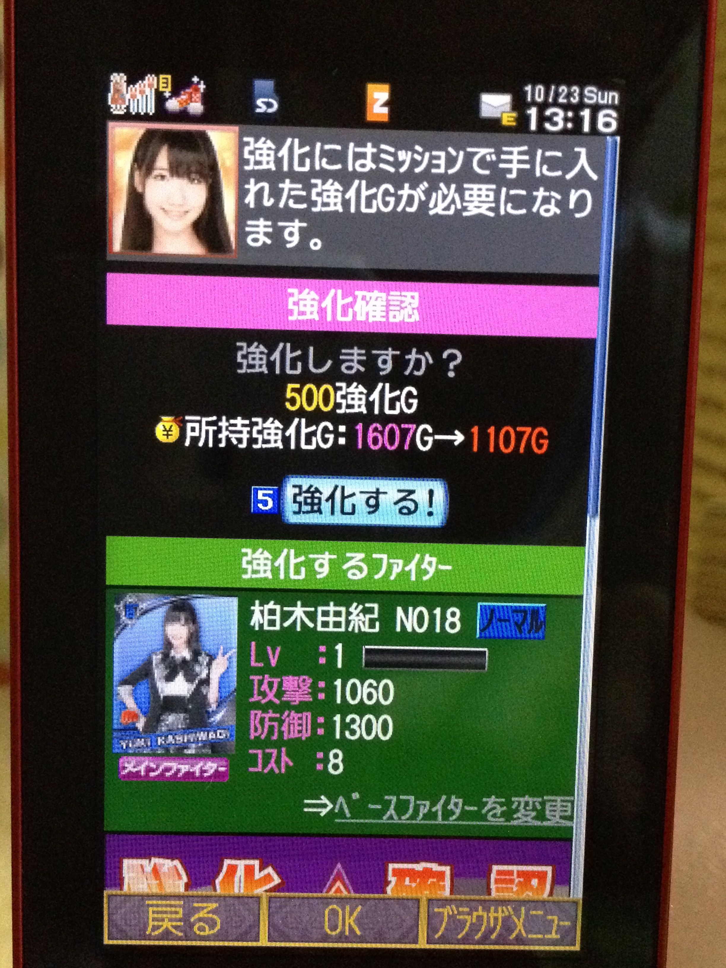 ・最初のガチャでは押しメンのカードが出るみたいです。ゆきりんを選んだので柏木由紀のカードができました。(カードそれぞれに攻撃力、防御力があります)