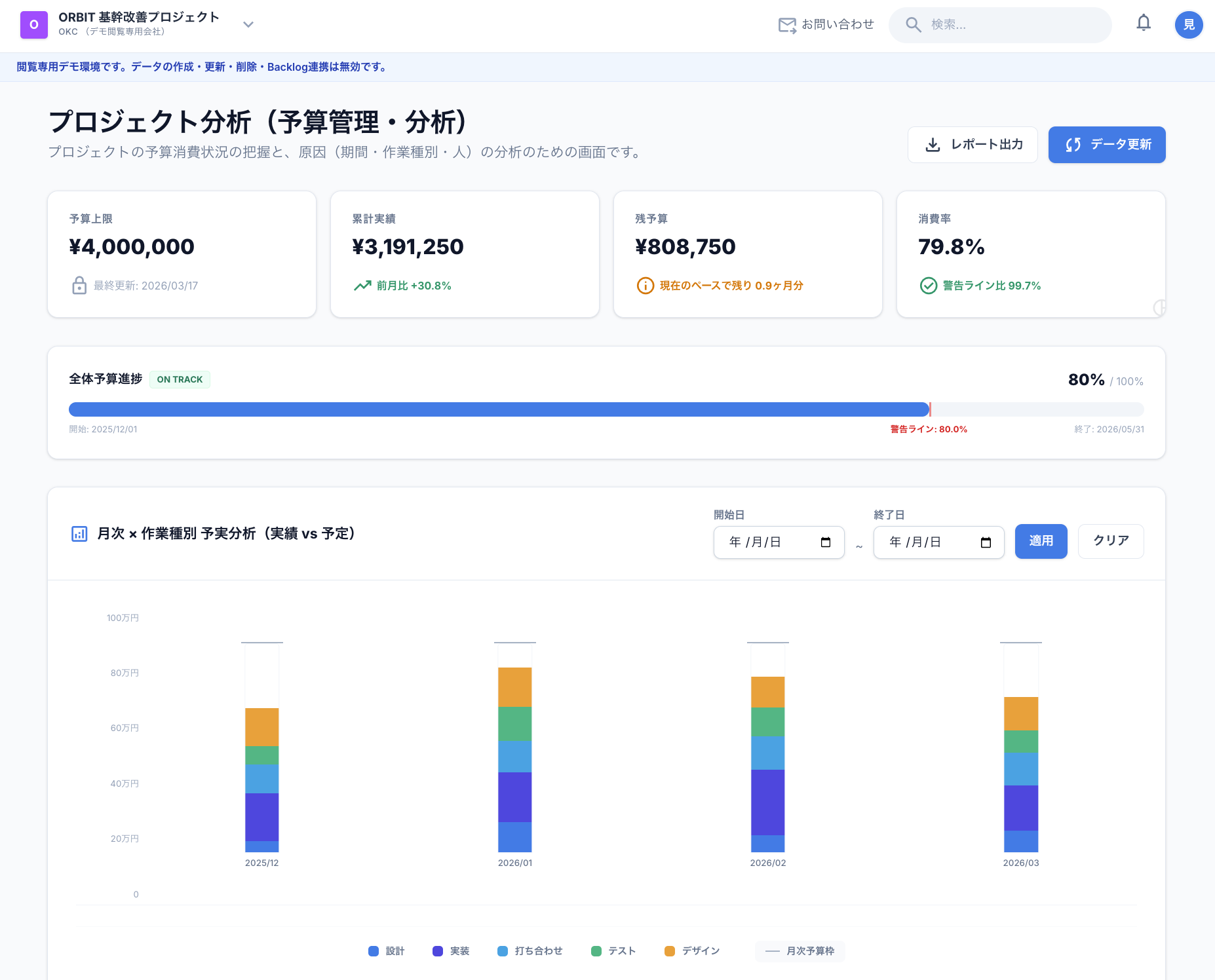 プロジェクト単体の予実管理ができるソリューションは結構少ない