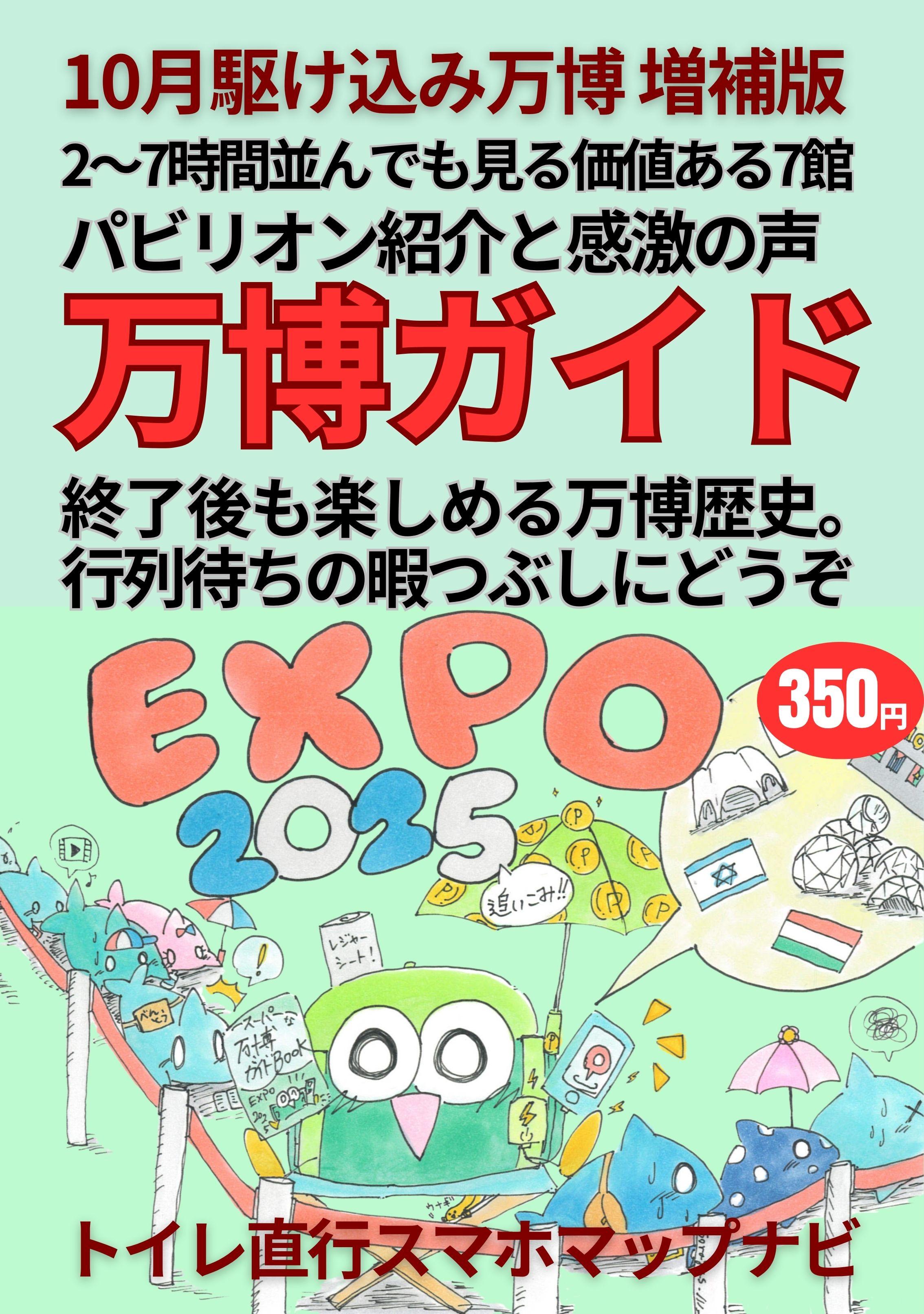 【10月増補版】ではパビリオン行列対策として「長時間待ちも退屈しない『万博147年の歴史読物』」が付いており、お得です。万博が終わってからでも、チラチラ通勤電車などで読めます。