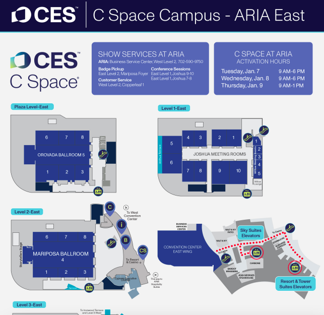 公式説明:"The C Space Campus ... is the home of C Space. At CES, C Space is the essential gathering point for the advertising, entertainment, and content communities worldwide."(Cスペース・キャンパスは、「Cスペース」の本拠地です。CESにおいてCスペースは、世界中の広告・エンターテインメント・コンテンツ業界の関係者が集う重要な拠点となっています。)