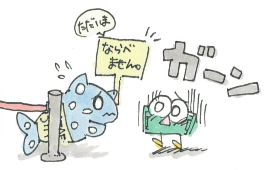 「さっつーのよい知らせ」にはサメ二郎とサメ三郎という双子が登場し、さっつーと絡みがあります。さっつーが喜ぶと口からポポポンとポイントが飛び出し、それがサメ二郎とサメ三郎のプレゼントとなって二人が大喜びする...といった展開です。実はこの双子は貧しい境遇にあり、その理由は...ネタバレになるので作品をご覧下さい。