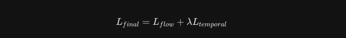 数学的には、DreamDojoは標準的なフローマッチング損失(Flow Matching Loss) $L_{flow}$ に、物体の動力学的な整合性を強化するための「時間的一貫性損失(Temporal Consistency Loss)」 $L_{temporal}$を組み合わせることで、物理的に矛盾のない映像予測を実現している