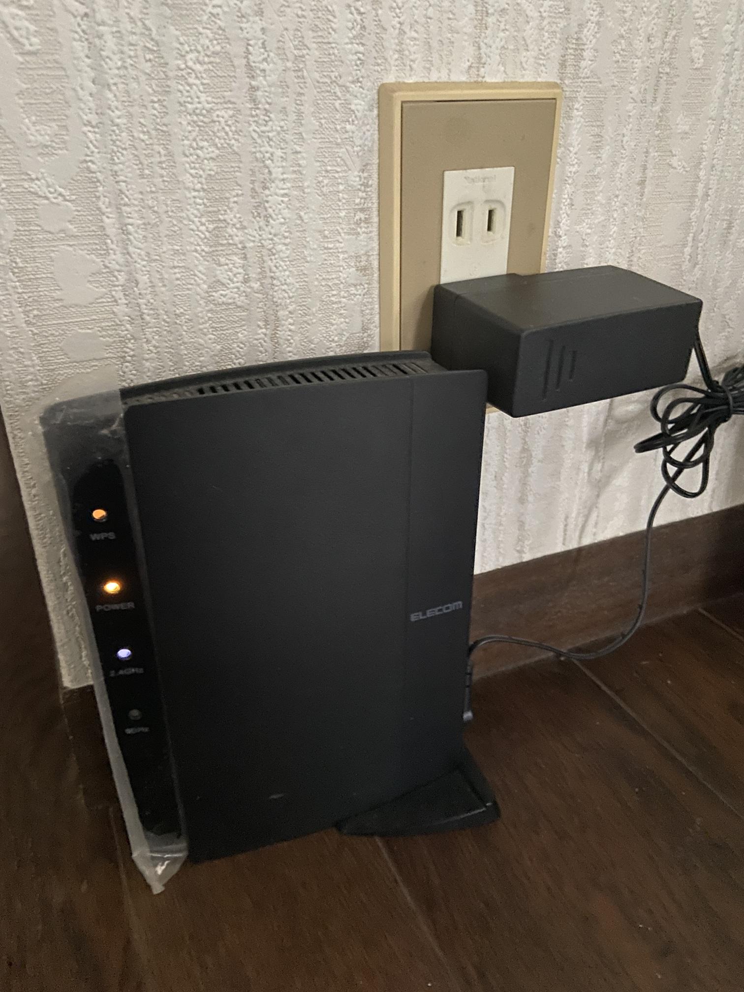 その回線は、自宅への引き込みの都合上、ブロードバンドルーター(Wi-Fi機能付)が2階の短い廊下に設置してあります。