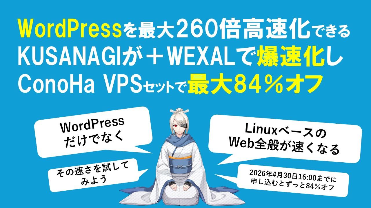 世界最速級WordPress実行環境「KUSANAGI+WEXAL」をConoHa VPSで実現 ~4月30日16時まで最大84%オフ~